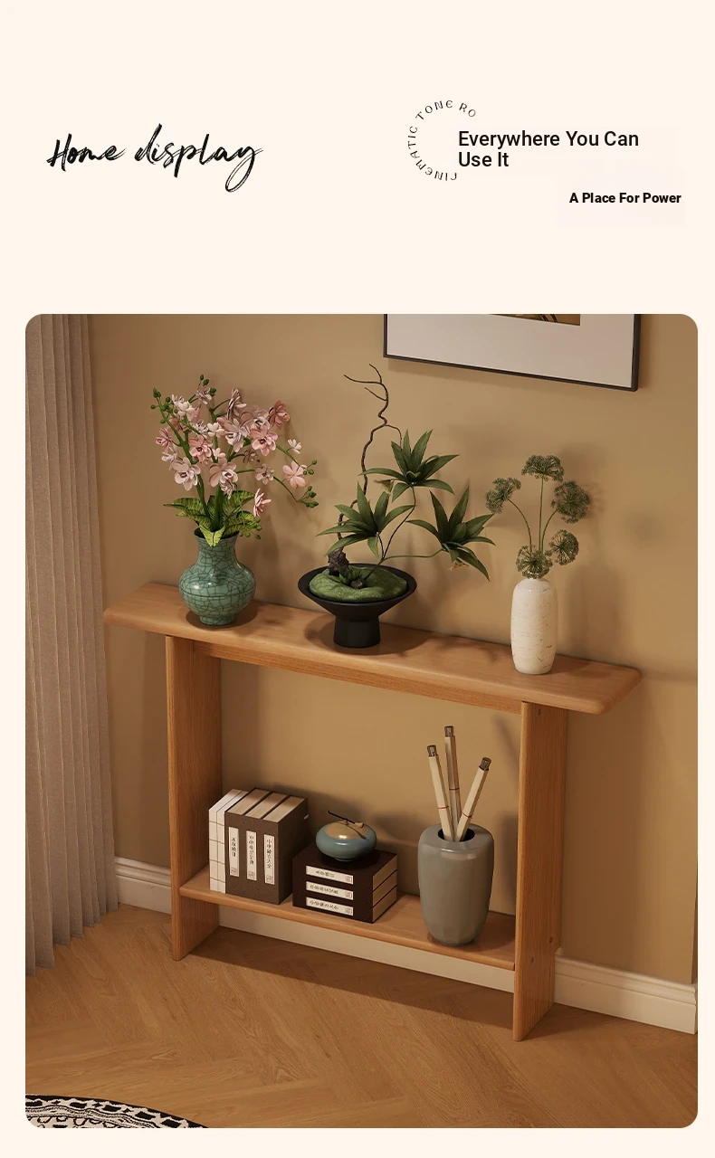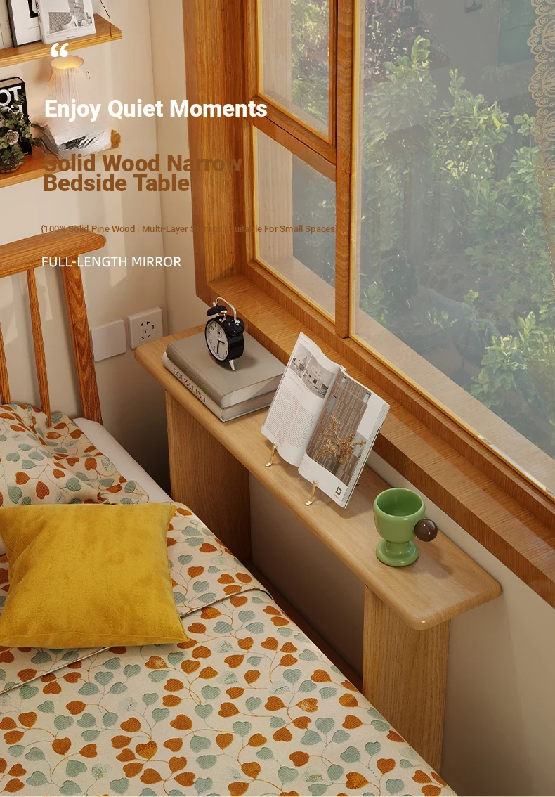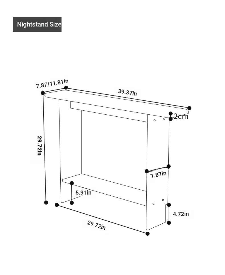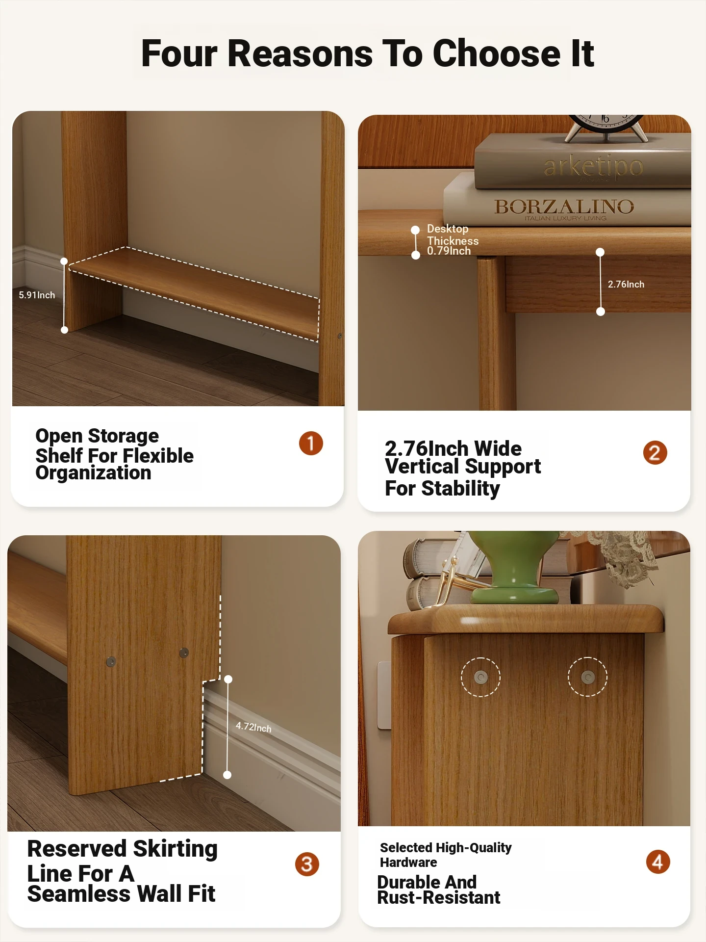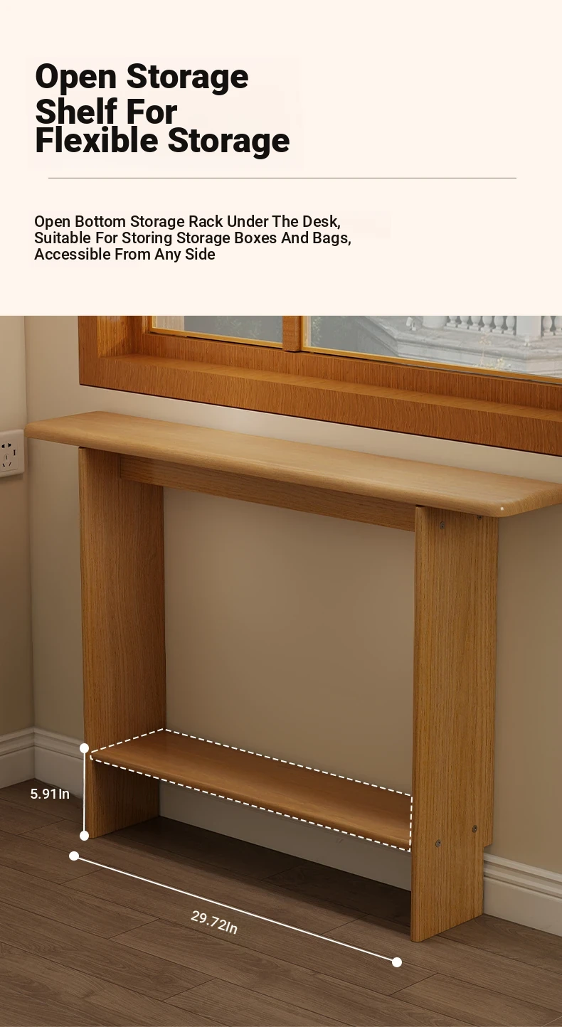 Narrow Wooden Side Table for Bedroom - Wall-Mounted Slim Console with Two-Tier Storage Shelf - Ideal for Living Room Entryway and Home Use