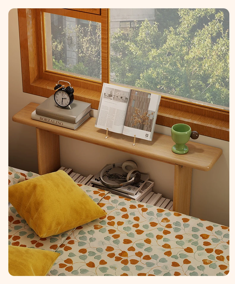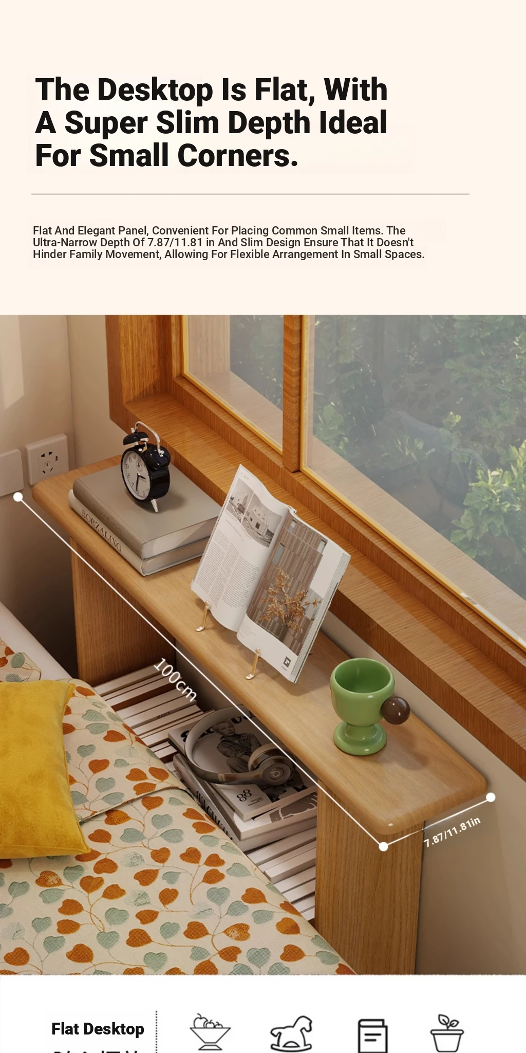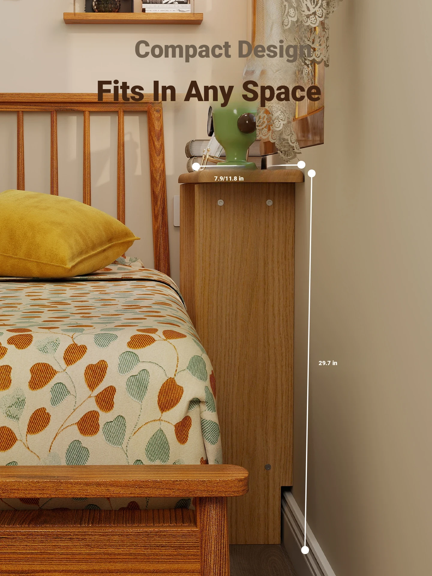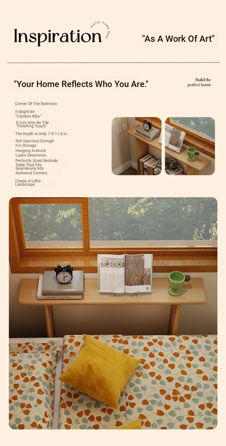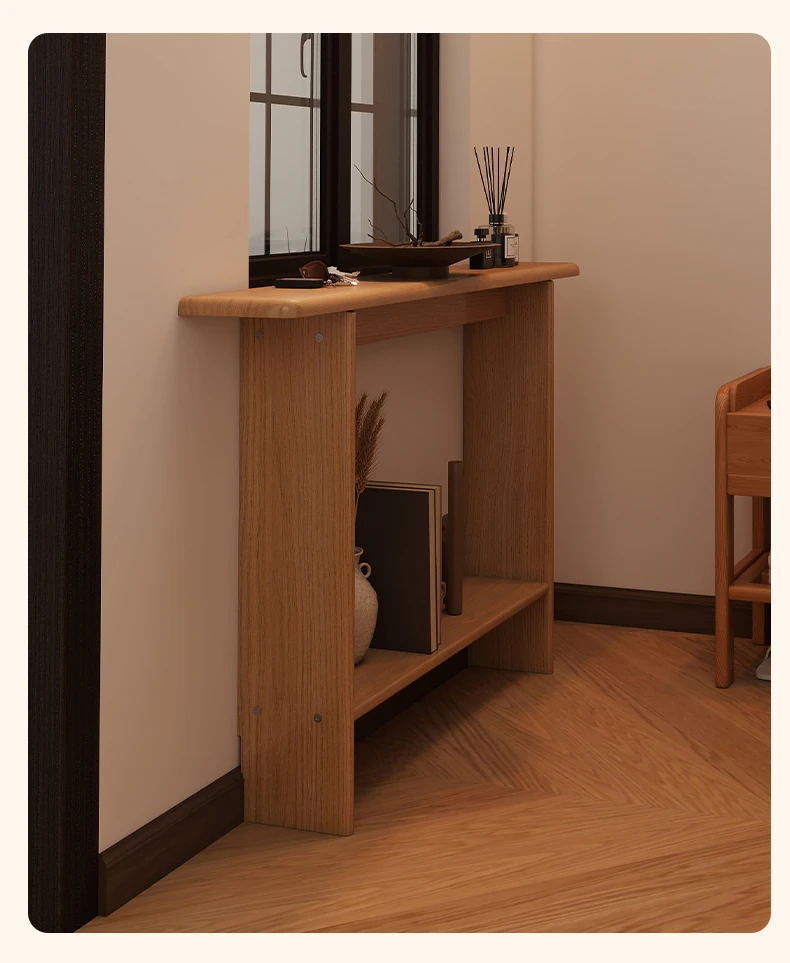 Narrow Wooden Side Table for Bedroom - Wall-Mounted Slim Console with Two-Tier Storage Shelf - Ideal for Living Room Entryway and Home Use