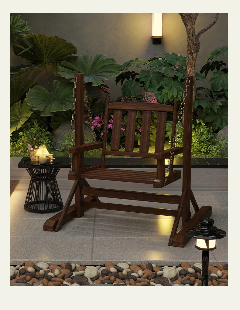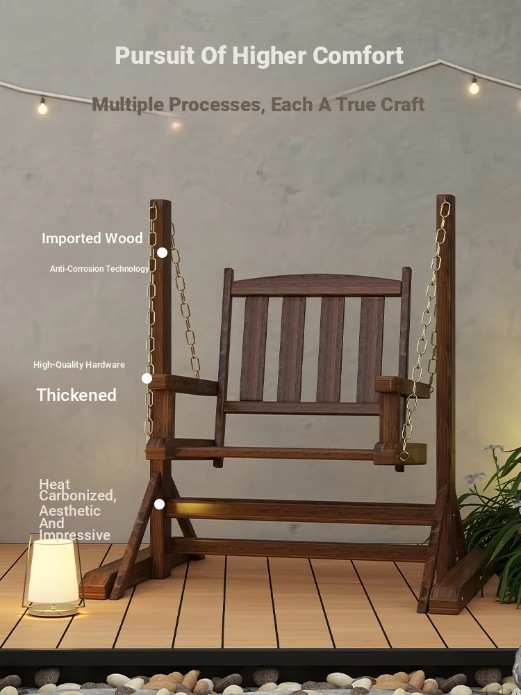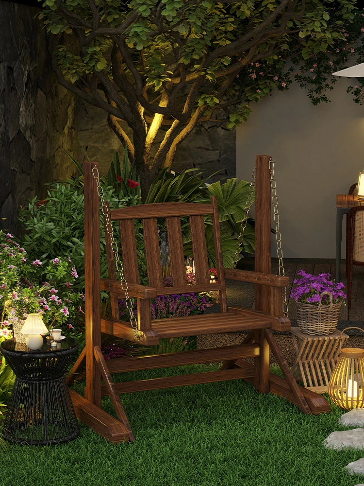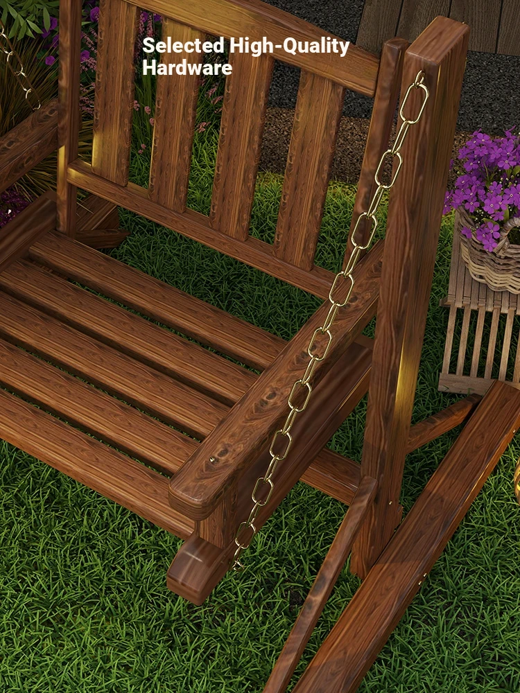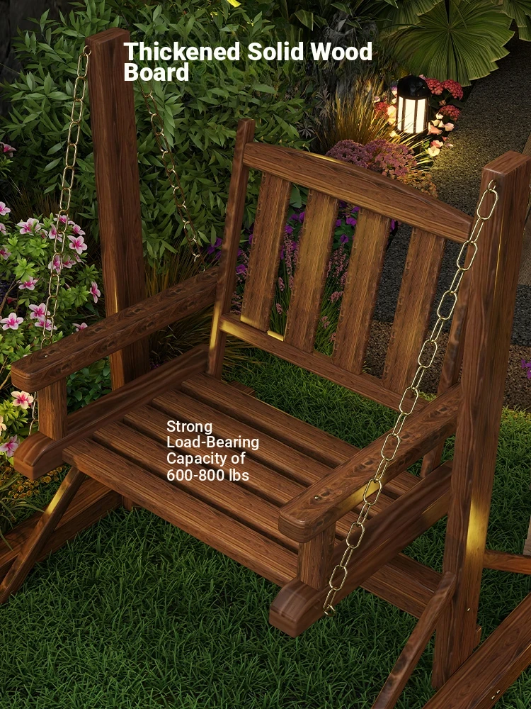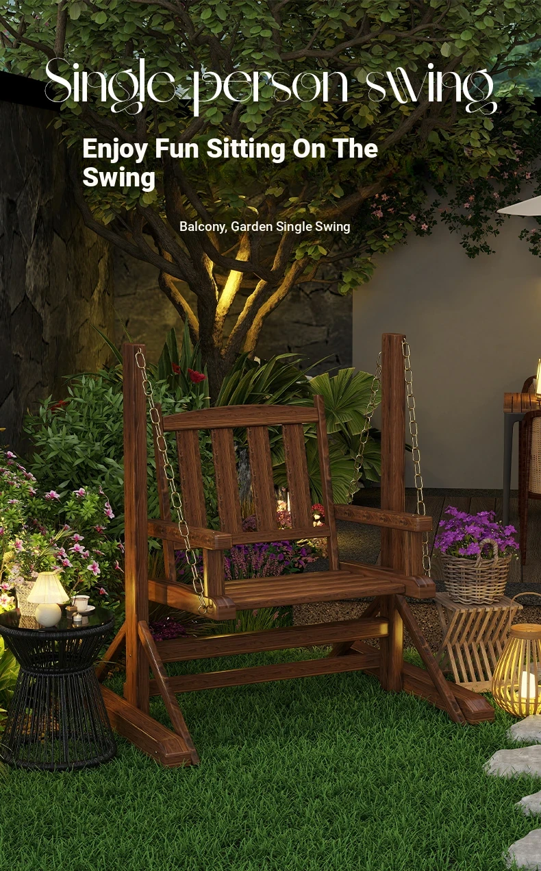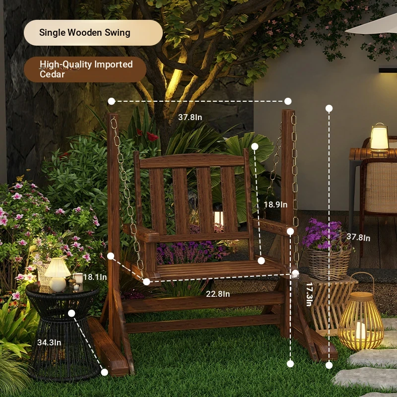 Outdoor Wooden Swing Chair - Rainproof and Corrosion-Resistant Single Seater for Patio, Garden, and Balcony - Trendy Hanging Chair for Relaxation