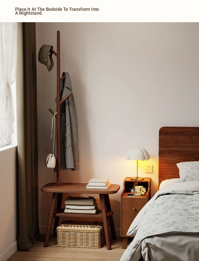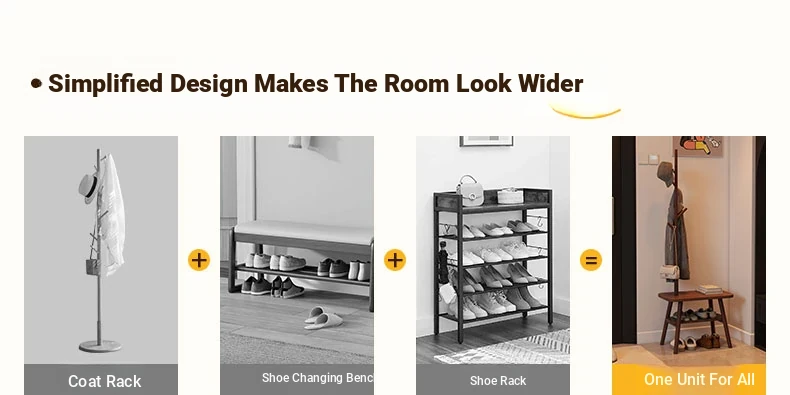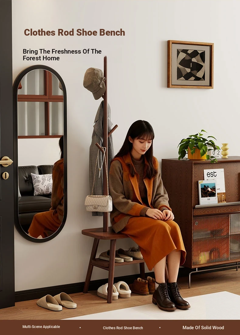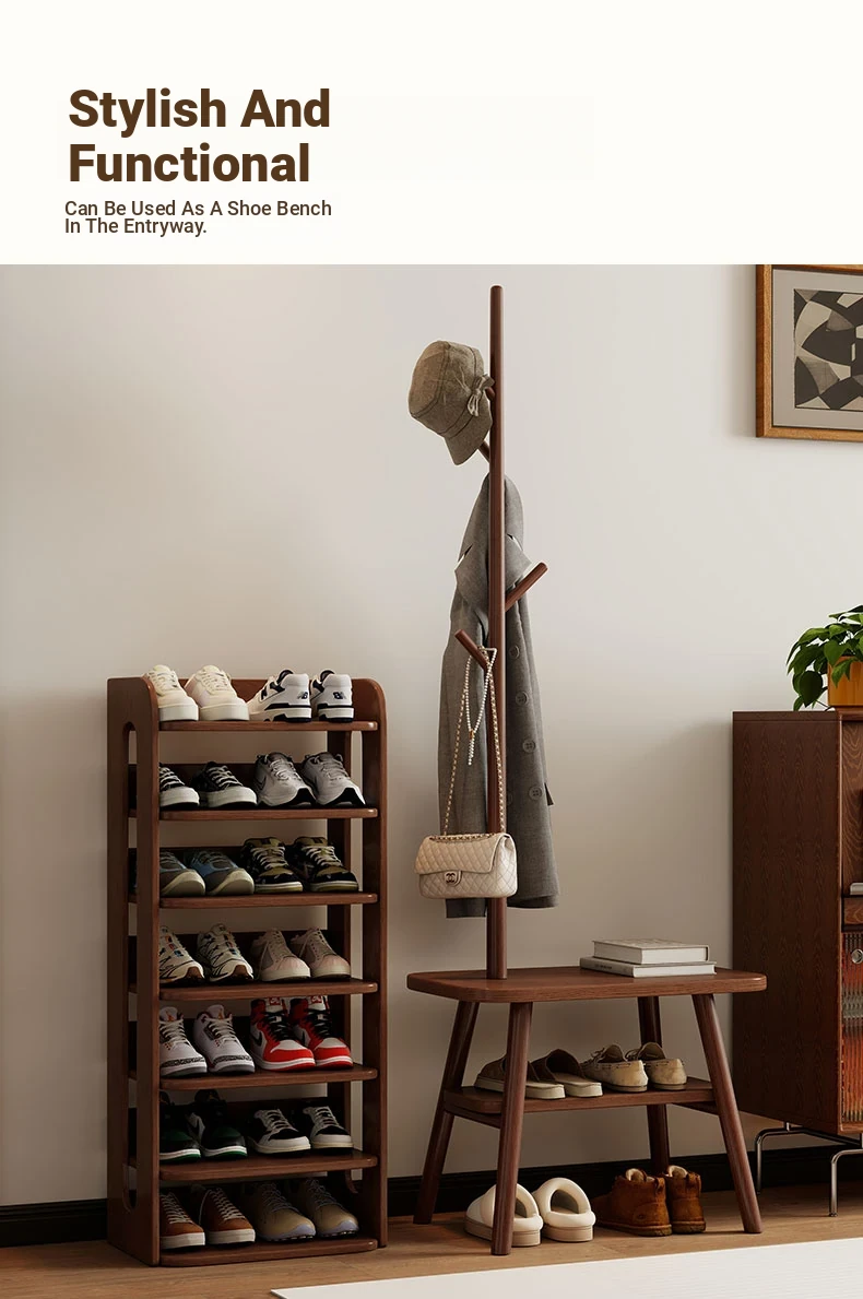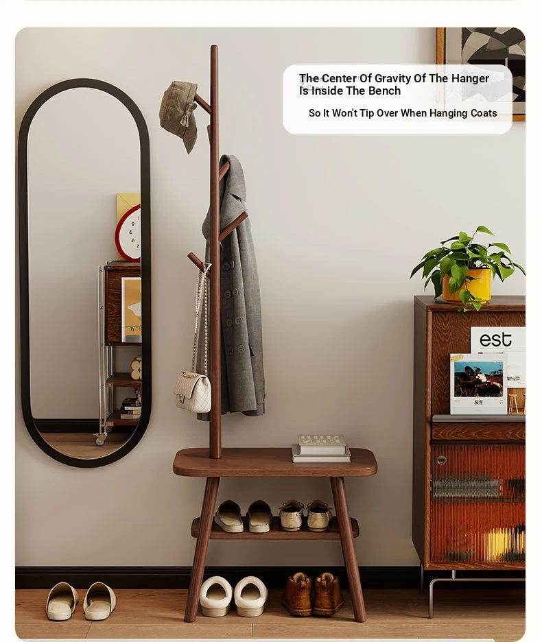 23.62in Wood Color [Shoe Changing Stool + Coat Rack + Shoe Rack] - Delivered to Your Door