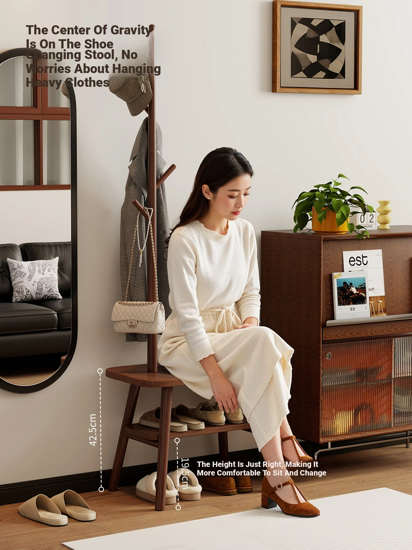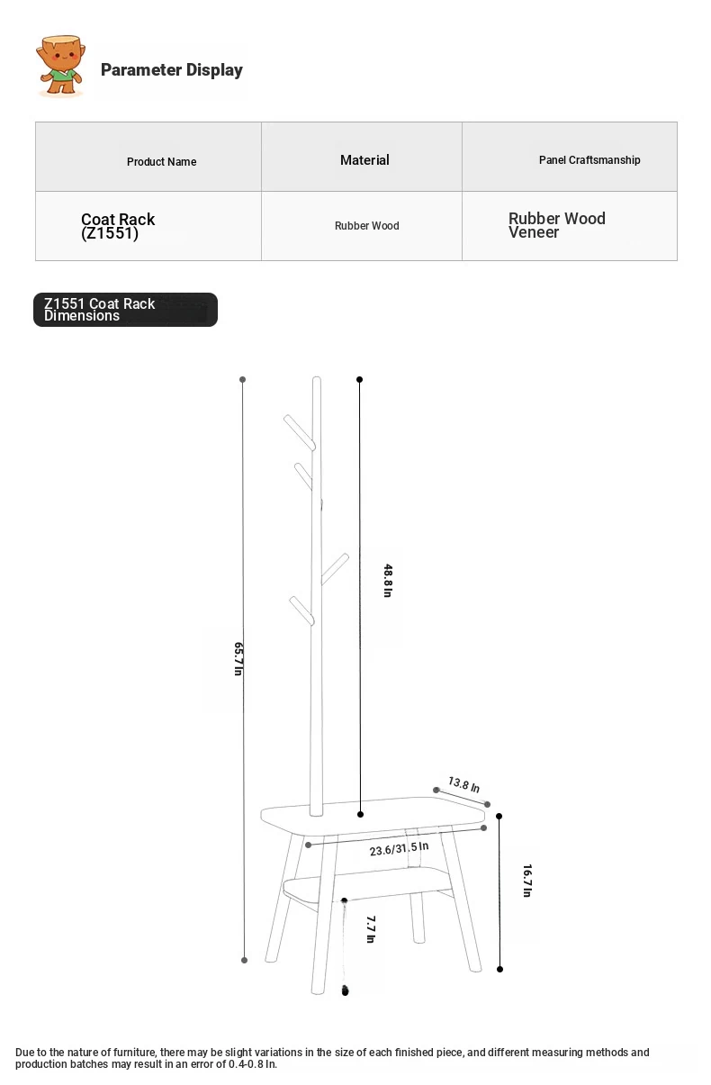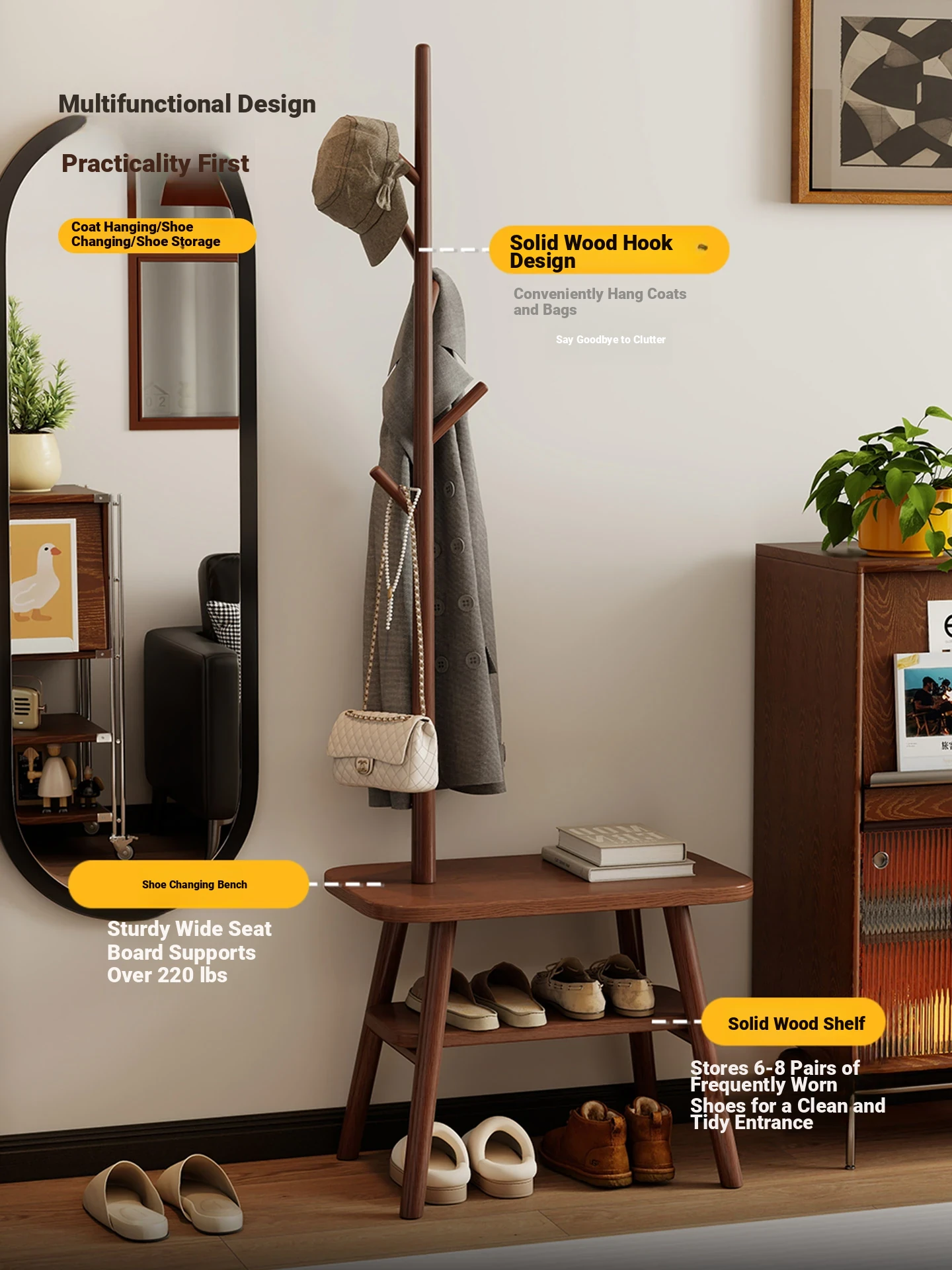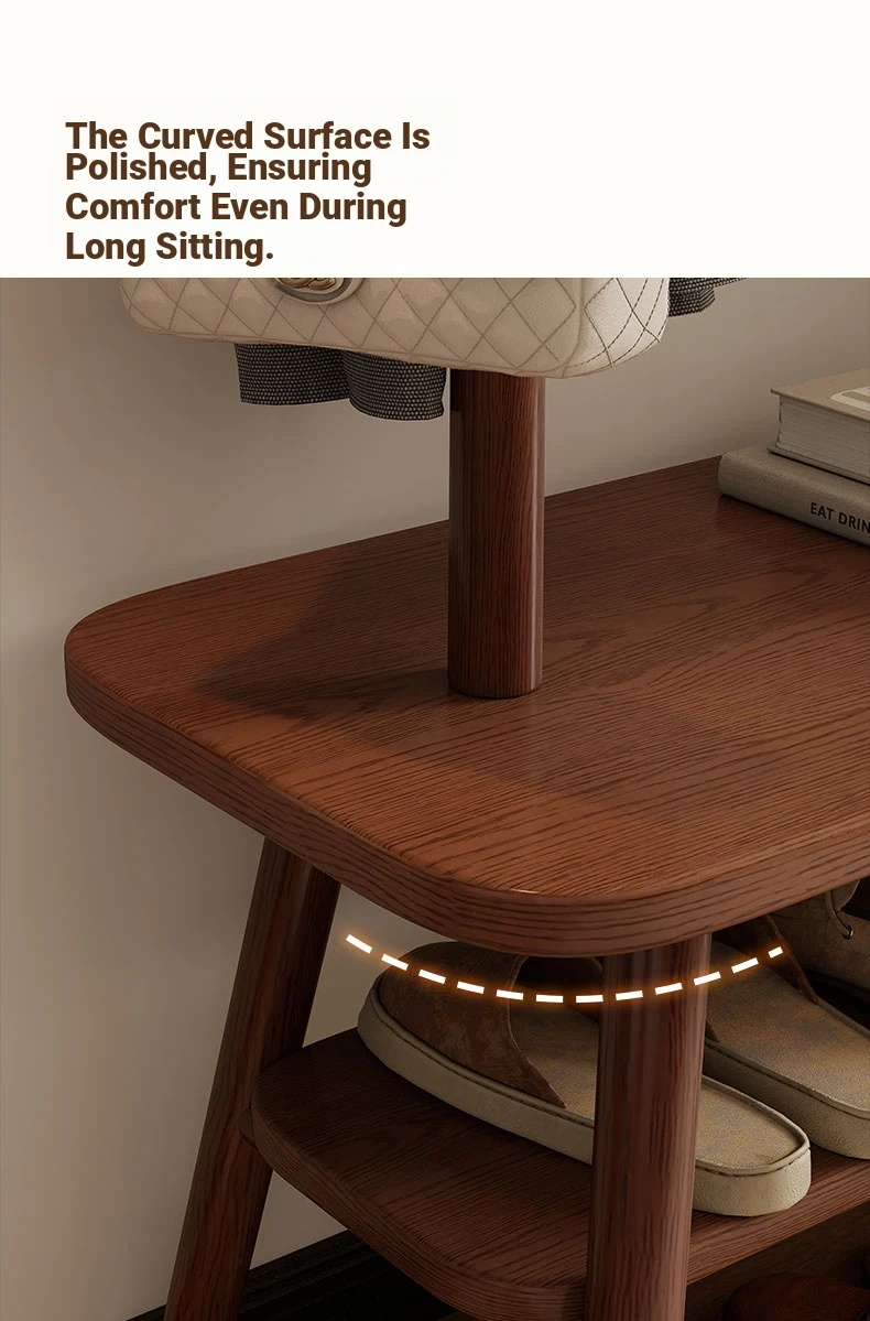 31.50in Wood Color [Shoe Changing Stool + Coat Rack + Shoe Rack] - Delivered to Your Door