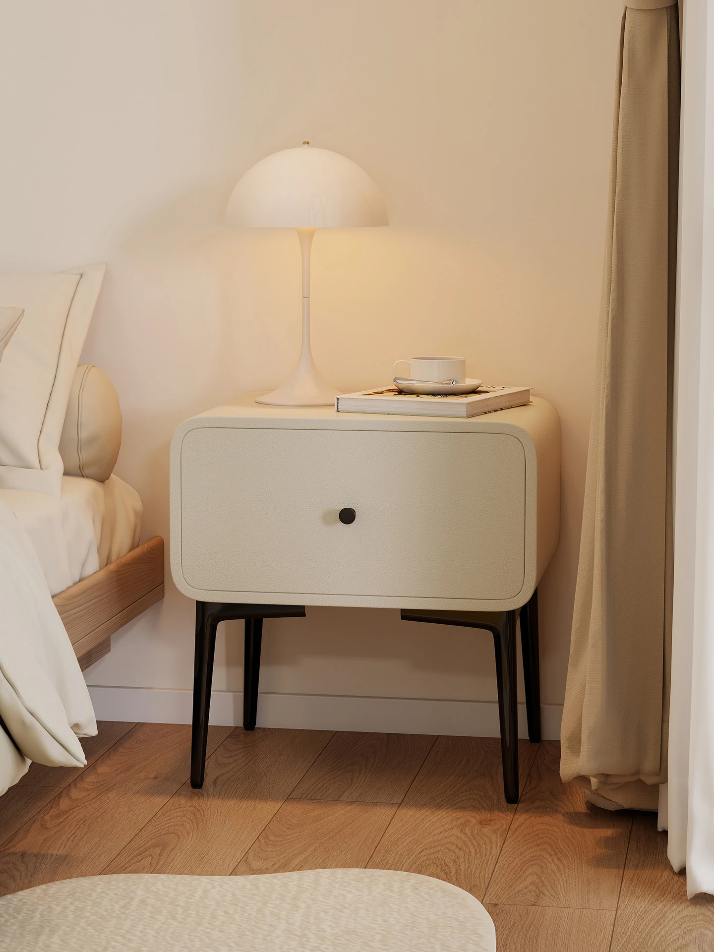 Modern Minimalist Small Nightstand - Luxurious Beige Wooden Bedroom Side Cabinet with High-Quality Storage Solution for Your Home