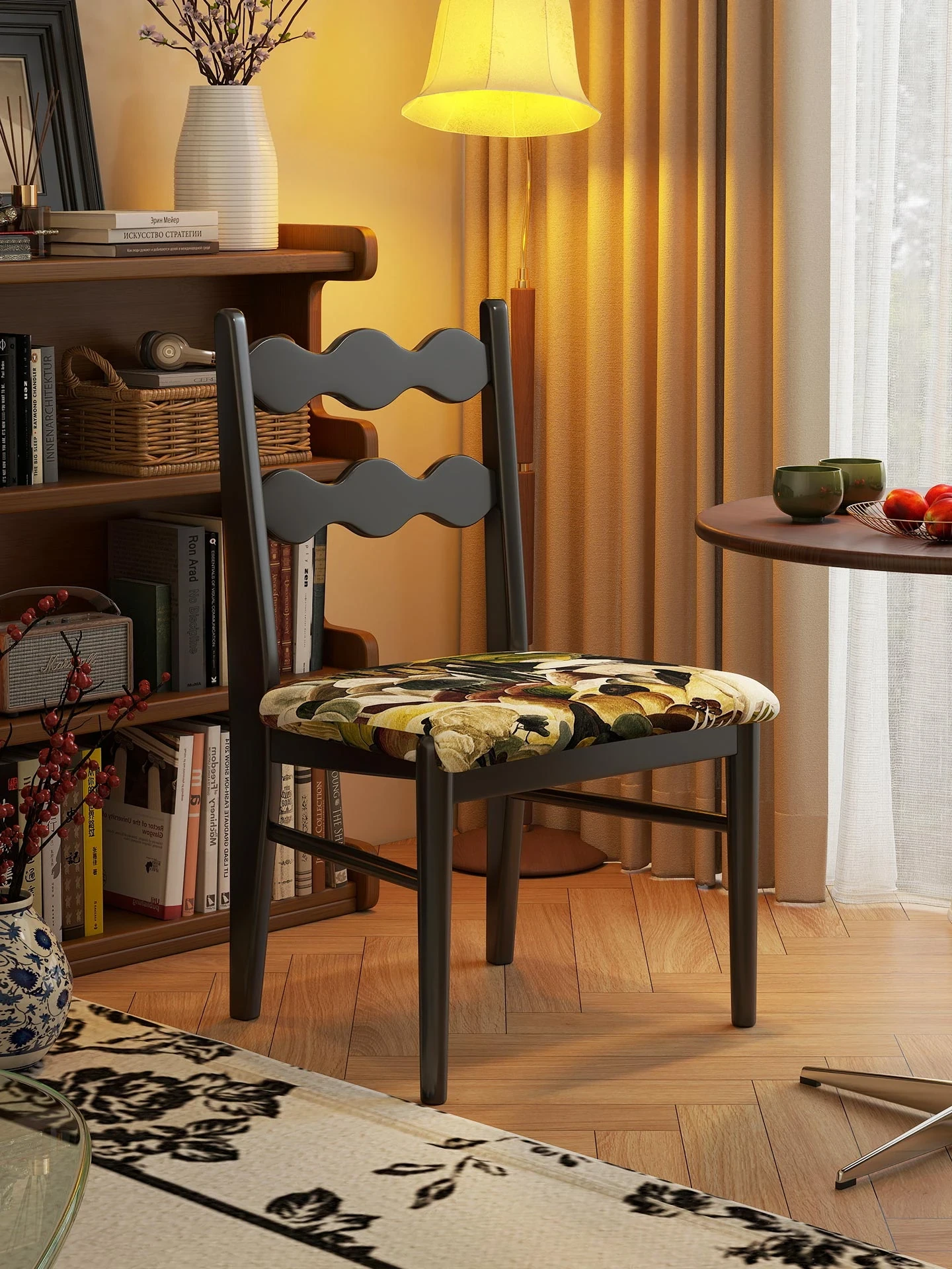 French Vintage Solid Wood Dining Chair - Home Restaurant Backrest Chair with Retro Designer Style for Study and Desk Use