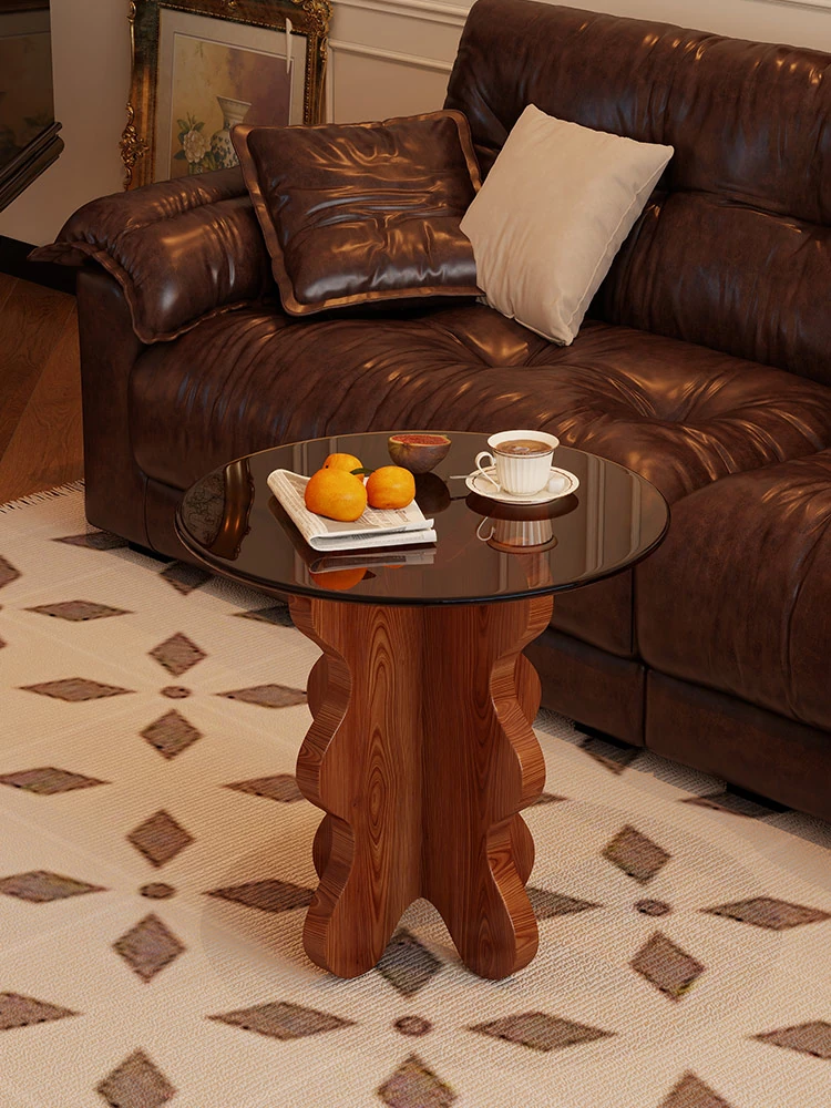 Vintage Solid Wood Side Table for Living Room - Creative Corner Table, Ideal for Small Spaces - Multifunctional Storage Rack, Bedside Cabinet, and Glass Coffee Table. Perfect for Cozy Homes!