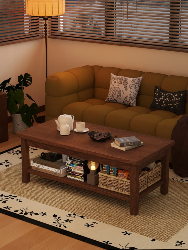 Classic Solid Wood Vintage Coffee Table - Double-Layer Minimalist Design for Living Room, Perfect for Small Spaces, Elegant Chinese Style Rectangular Table for Home Use