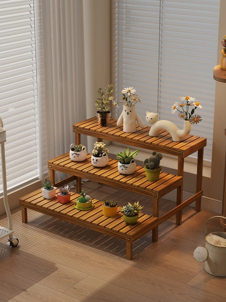 Indoor Multi-Tier Solid Wood Balcony Flower Rack - Stylish Floor Stand for Living Room, Perfect for Succulent Plants and Potted Greenery Display. Ideal for Home Decoration!