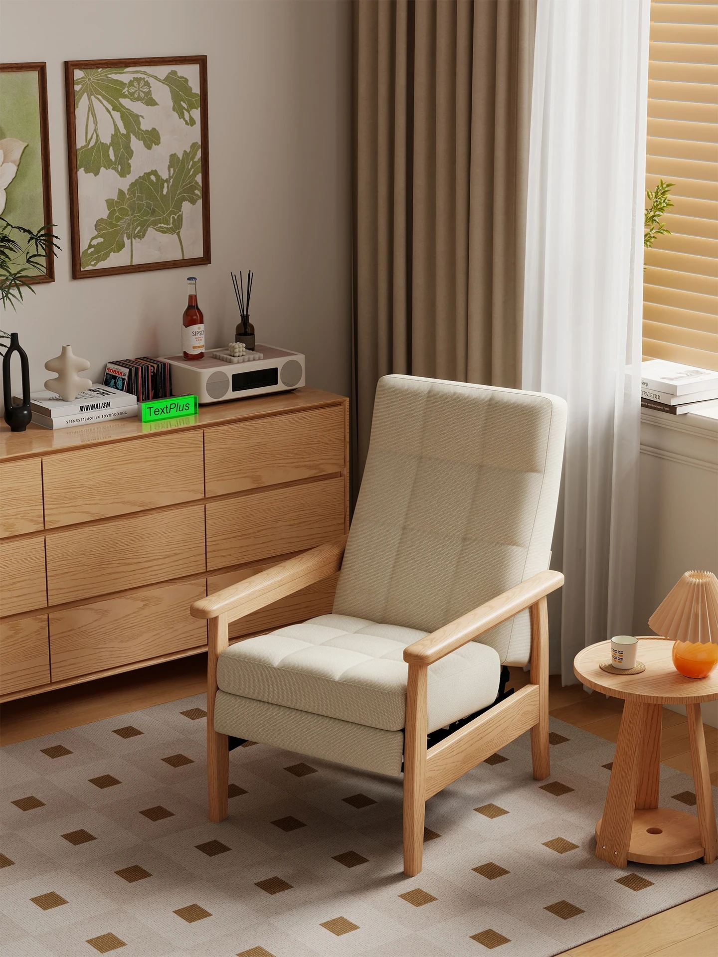Solid Wood Single Sofa Chair - Versatile Lounge Chair for Living Room, Balcony, or Study - Comfortable Recliner for Relaxation and Napping, Perfect for Lazy Days!