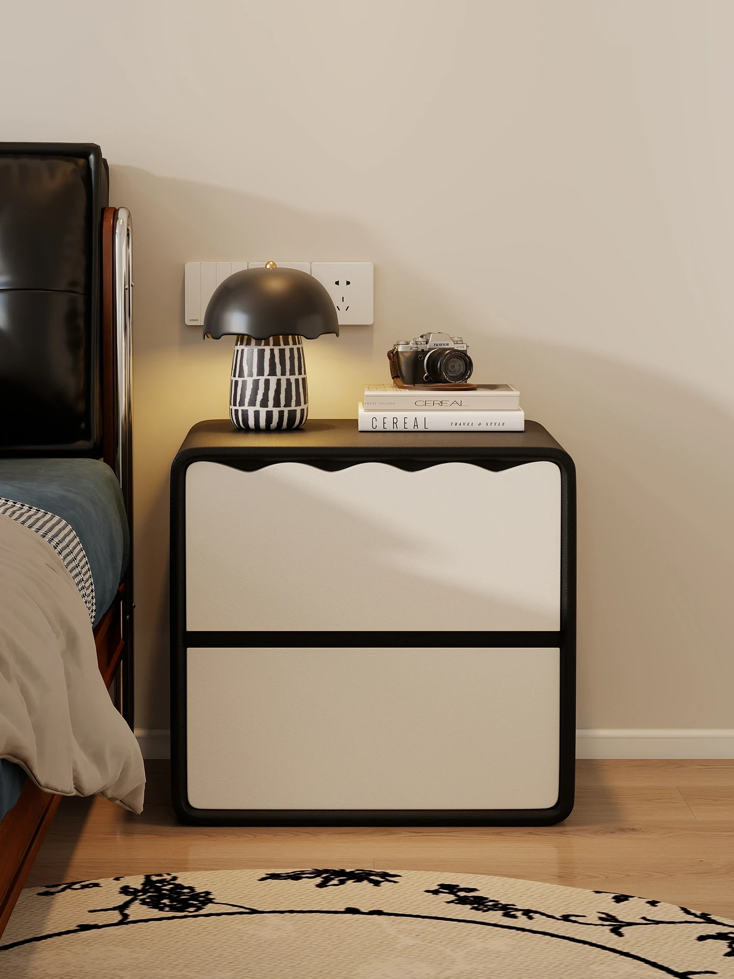 Modern Minimalist Nightstand - Solid Wood Storage Cabinet with Black and White Contrast, Round Edges, Elegant Touch for Your Bedroom, Luxury Storage Solution