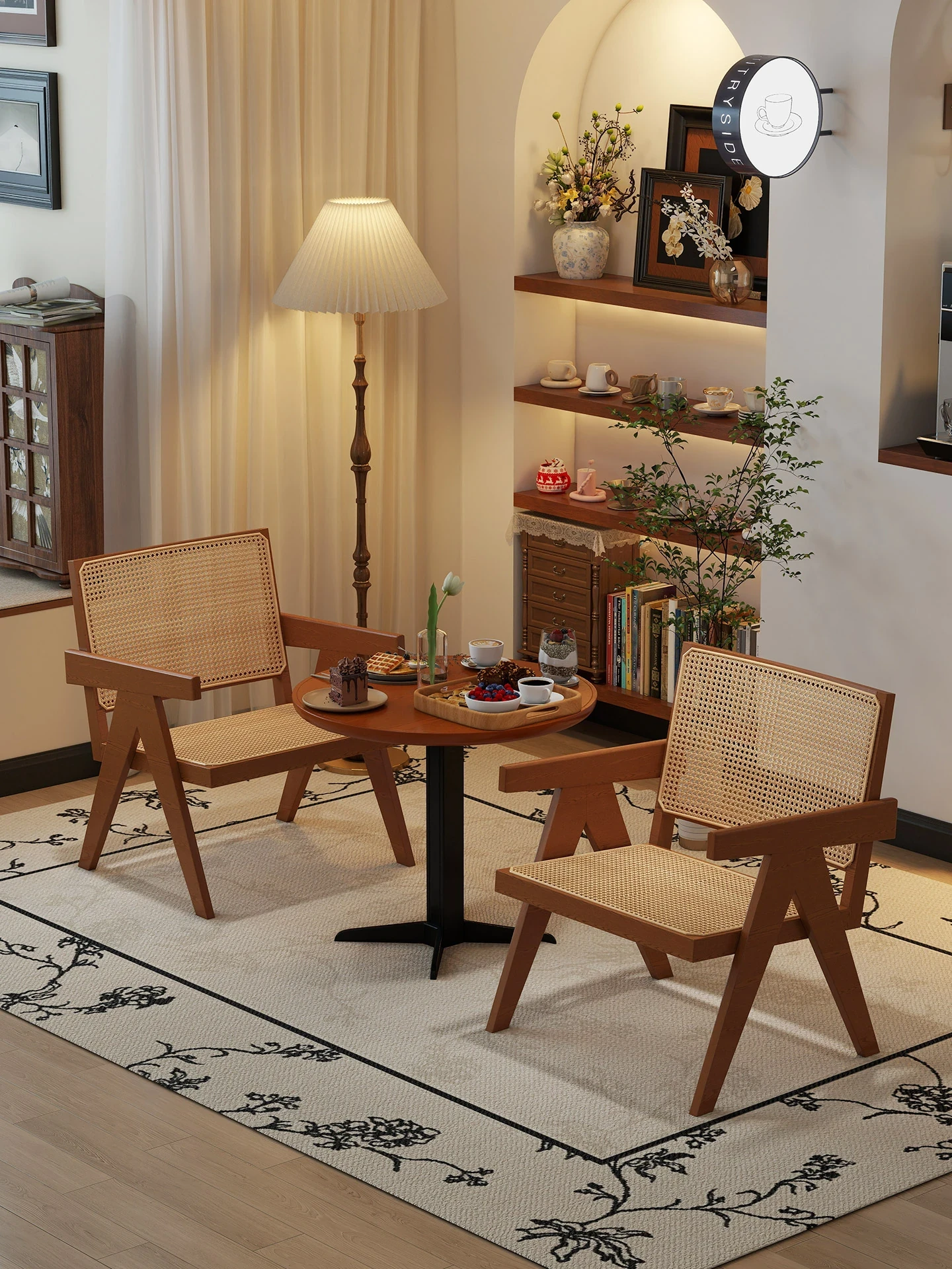 French Cream Floral Coffee Table Set - Creative Minimalist Design for Living Room, Perfect for Small Spaces and Unique Sofa Side Table