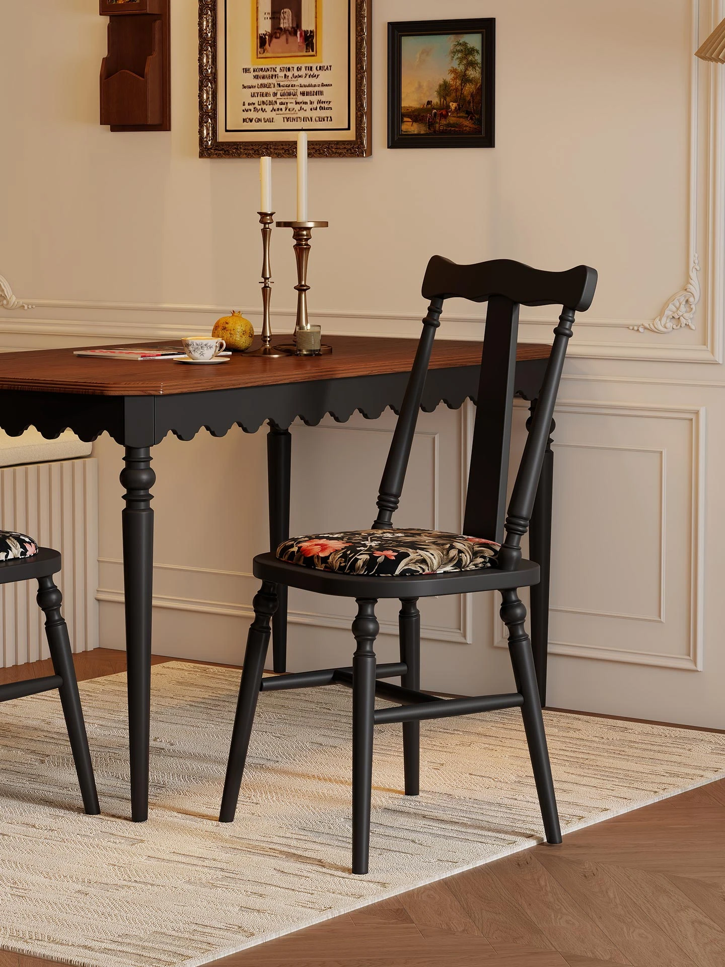 2025 New Designer Dining Table and Chair Set - American Style Solid Wood Dining Chairs for Home, Elegant Living Room Accent Chairs, Luxurious Tea Table Seating