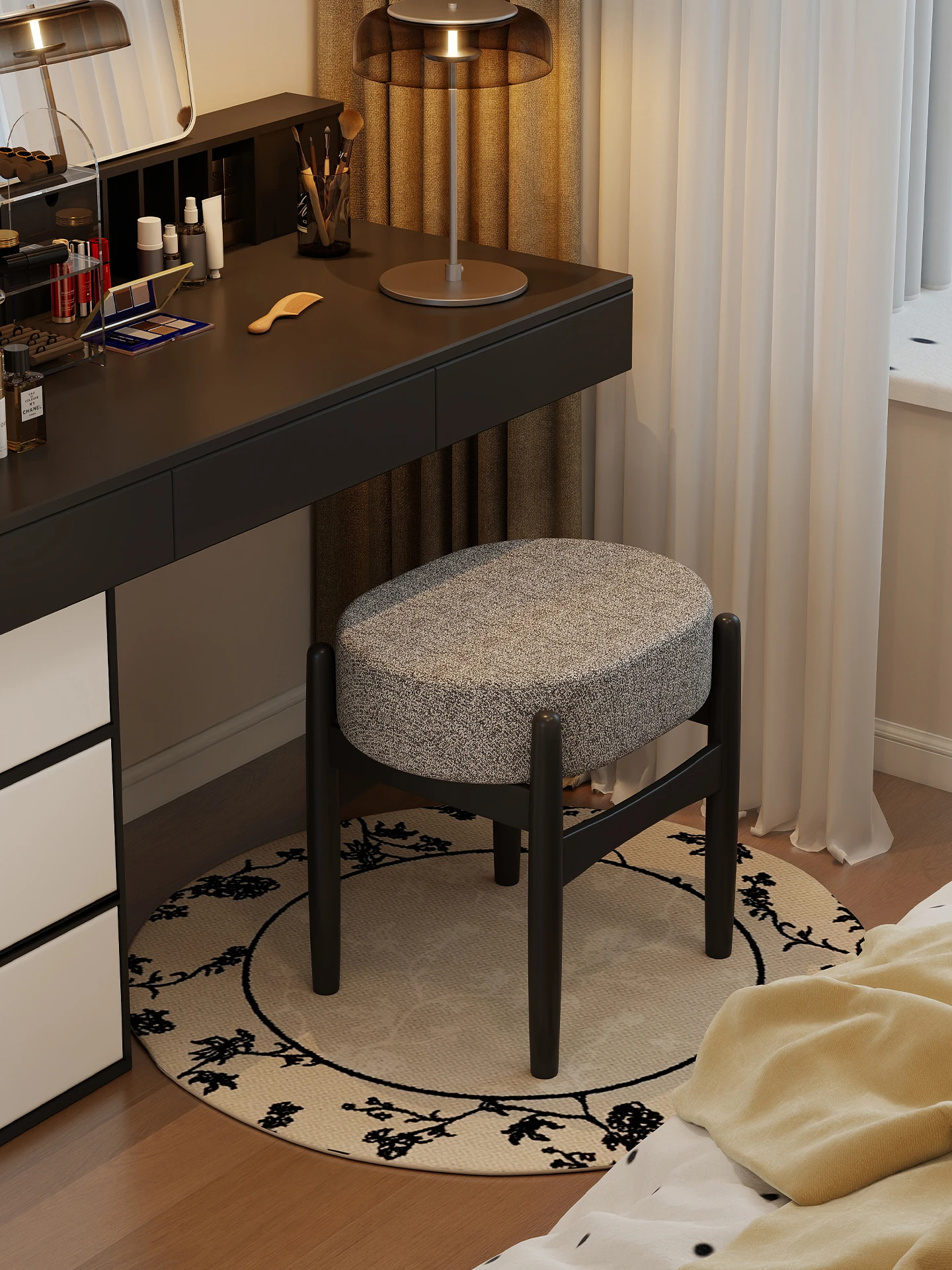 French Vintage Makeup Stool - Elegant Solid Wood Vanity Bench for Small Spaces, Perfect for Bedrooms and Entrances, Stylish Shoe Changing Stool for a Touch of Luxury