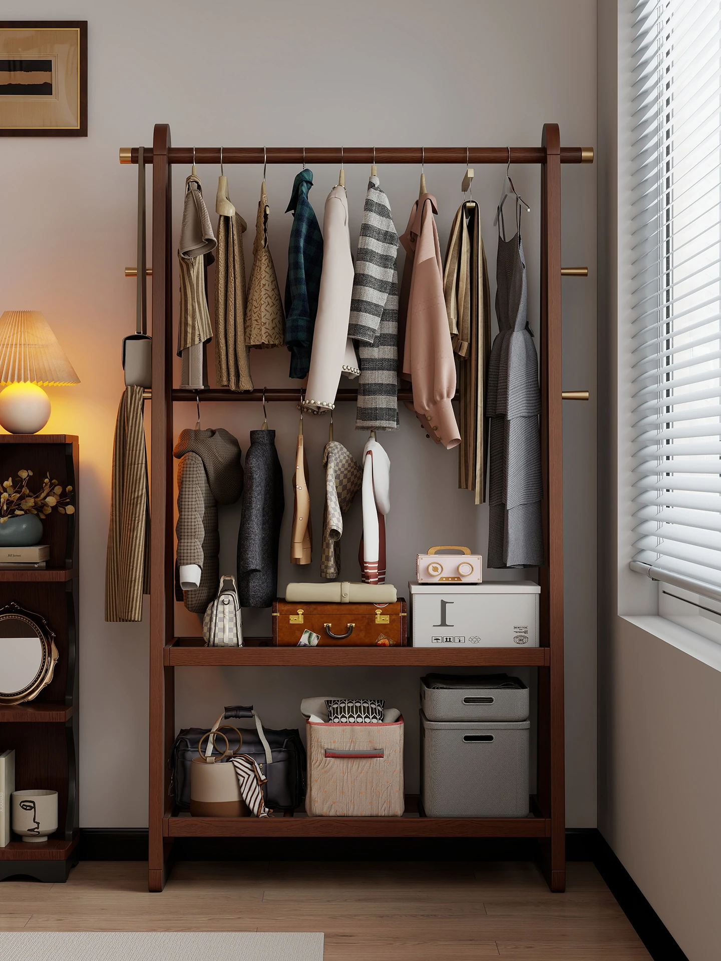 Solid Wood Freestanding Clothes Rack - Minimalist Bedroom Coat Stand with Easy Hanging Rod and Storage Solutions for Home Organization