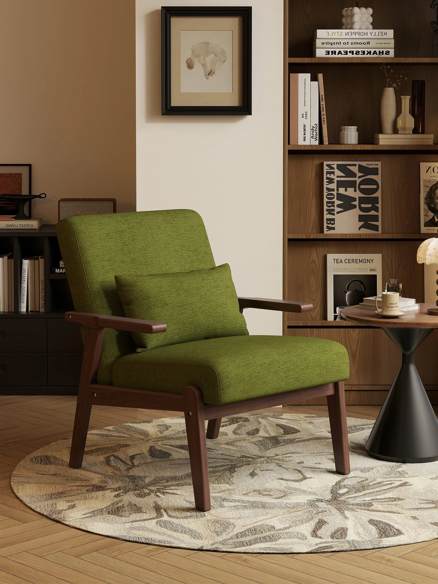 Nordic Solid Wood Armrest Vintage Single Sofa Chair - Modern Leisure Chair for Living Room, Designer's Study, Tea Room, and Meeting Spaces