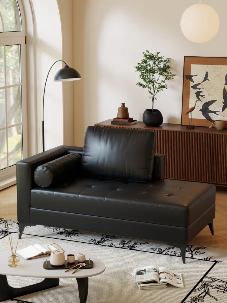 Italian Minimalist Lazy Chaise Lounge - Perfect for Small Spaces, Ideal for Living Rooms, Bedrooms, and Balconies. Comfortable Single Leather Sofa Chair for Relaxation.