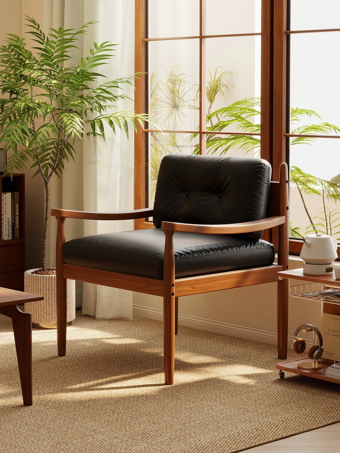 Solid Wood Dining Chair - Chandigarh Style, Versatile Rattan Chair for Home, Café, Balcony, and Outdoor Use. Perfect for Minimalist Wabi-Sabi Aesthetics, Ideal for Cozy Spaces and Guesthouses.