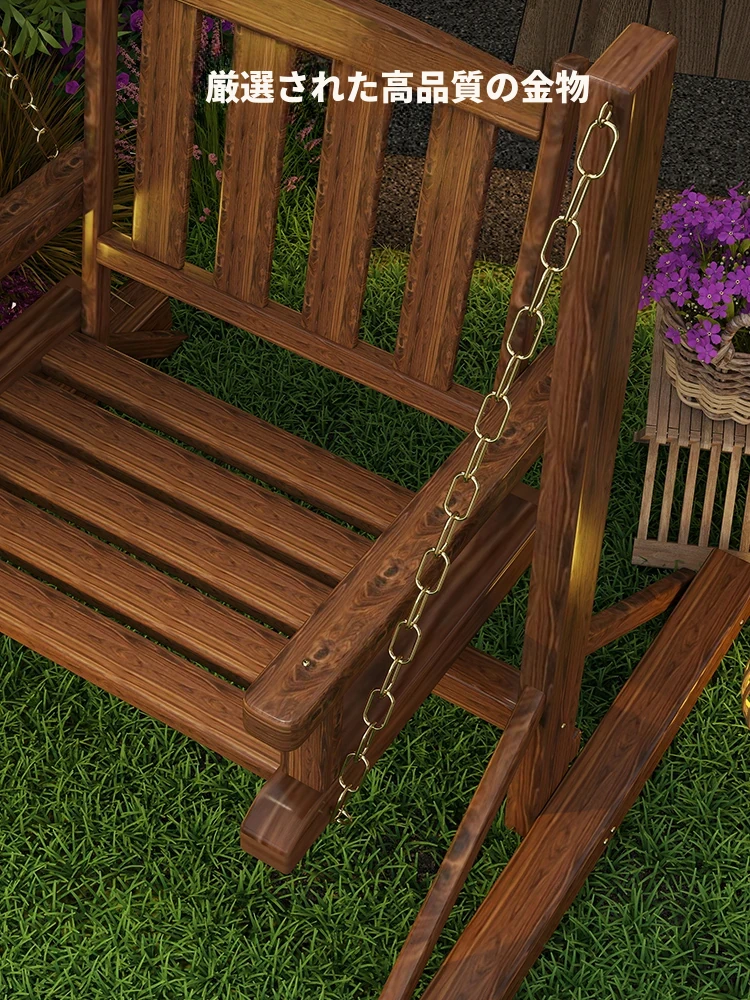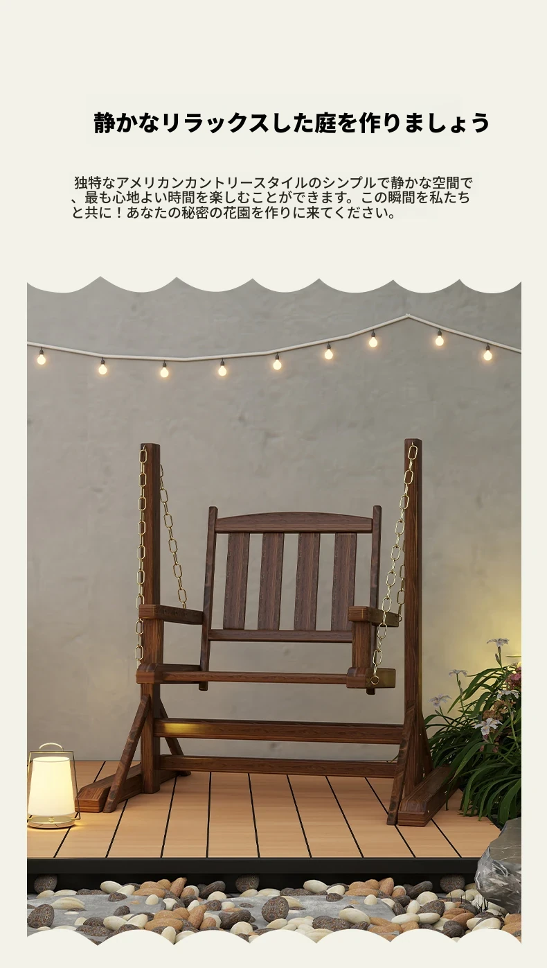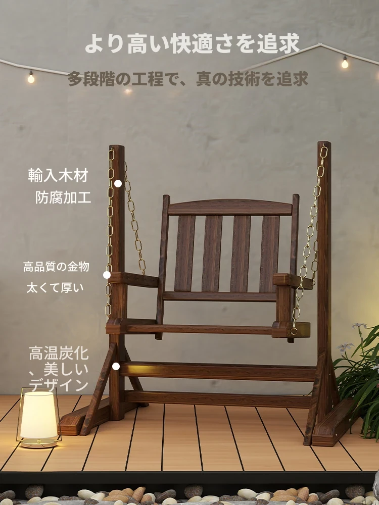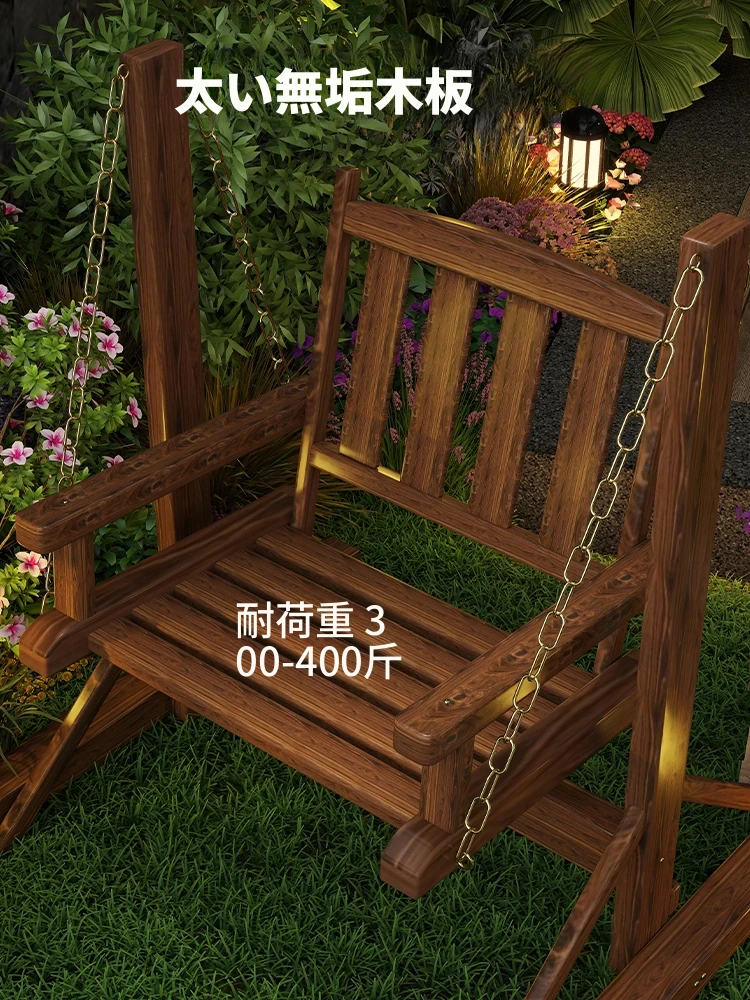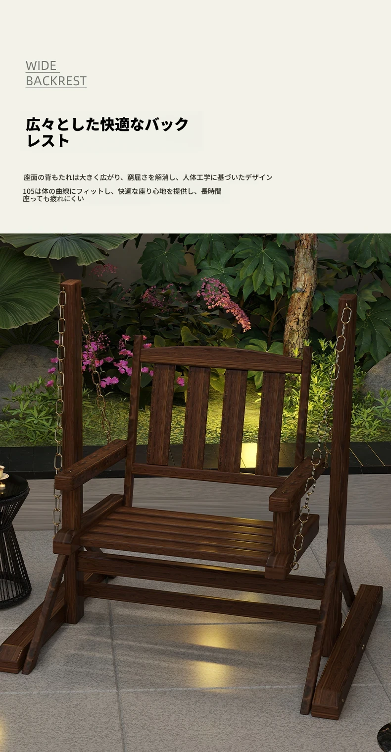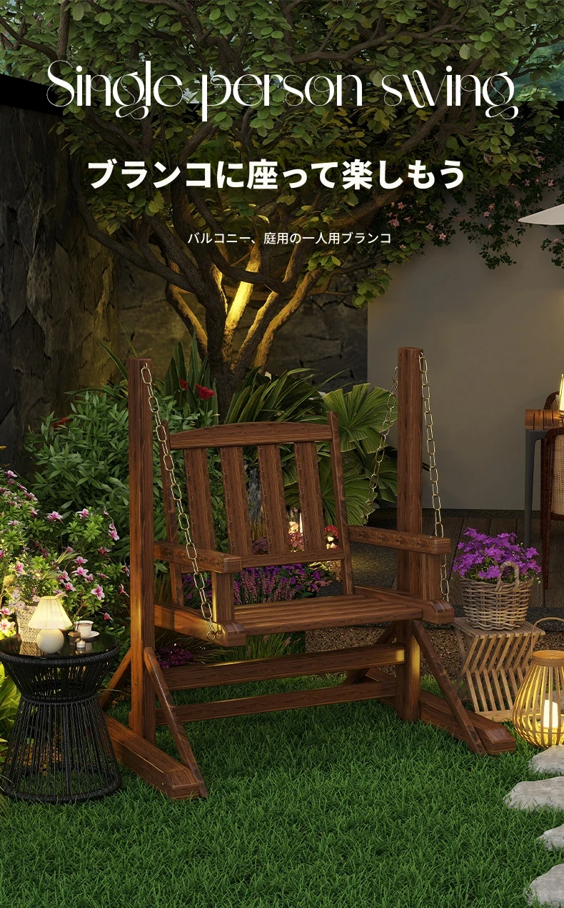 アウトドア庭園用の防水・防腐木製シングルハンモックチェア!おしゃれなデザインで、リラックスした時間を楽しめる人気の秋千(ブランコ)。バルコニーや庭にぴったりのアイテムです。