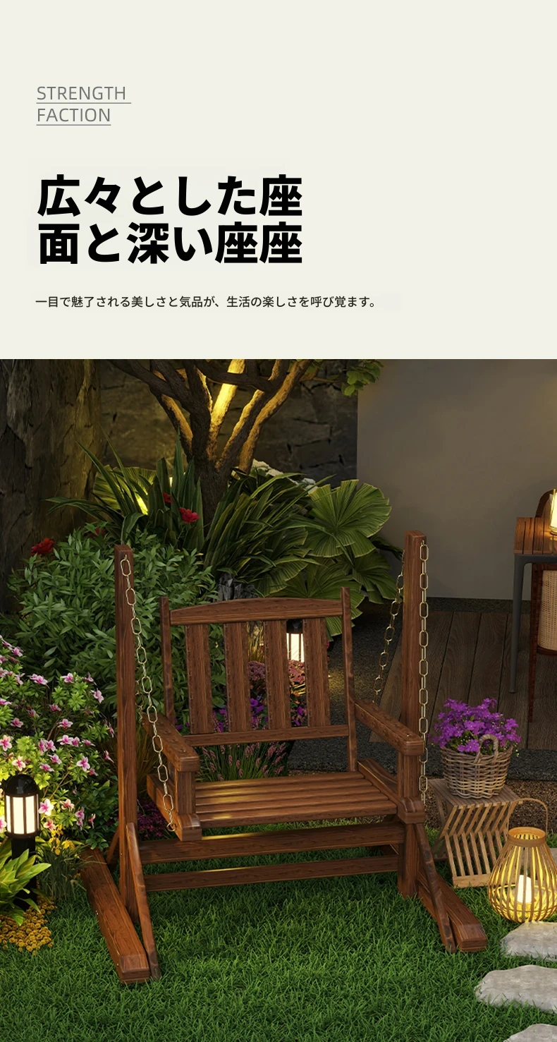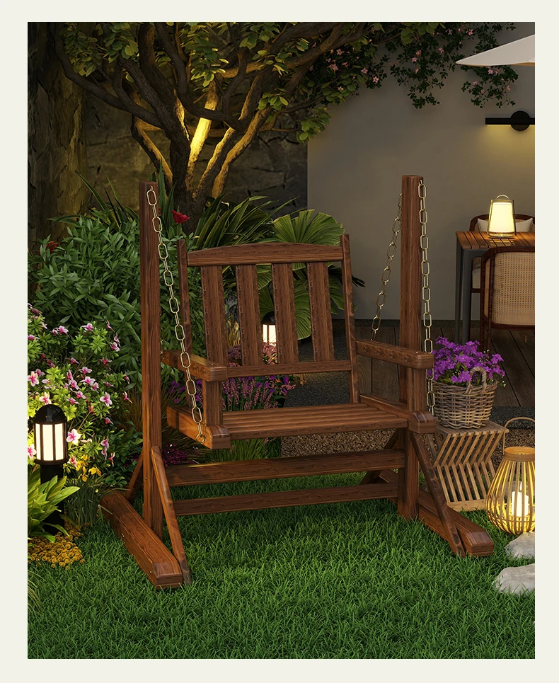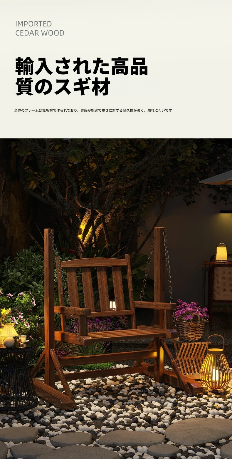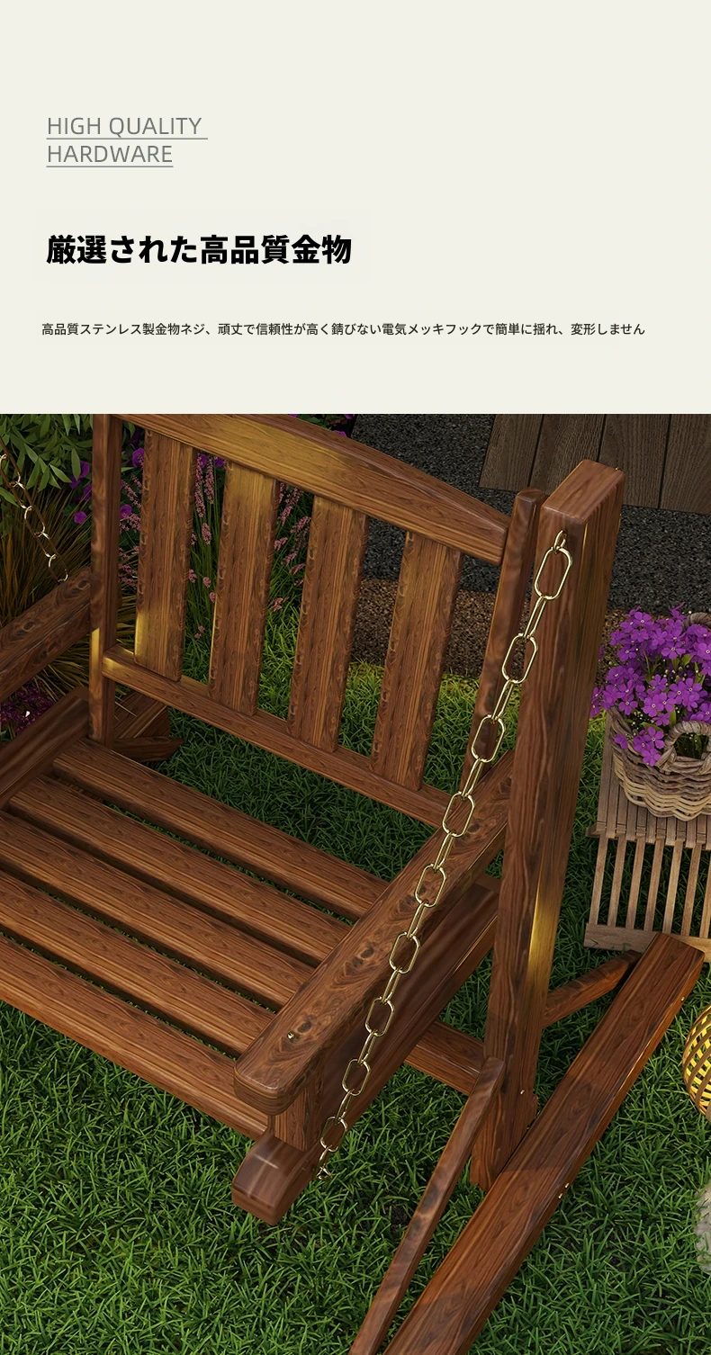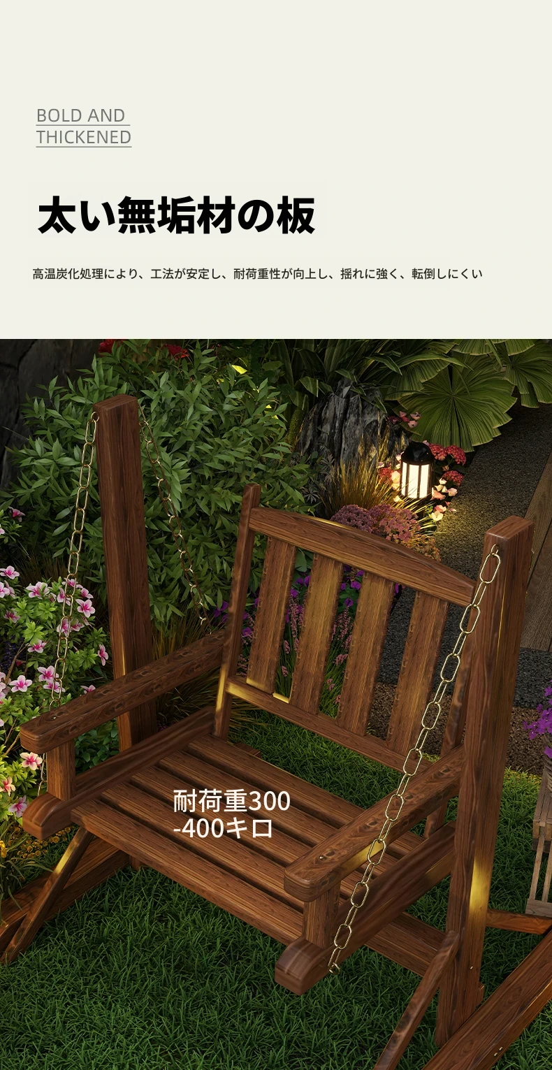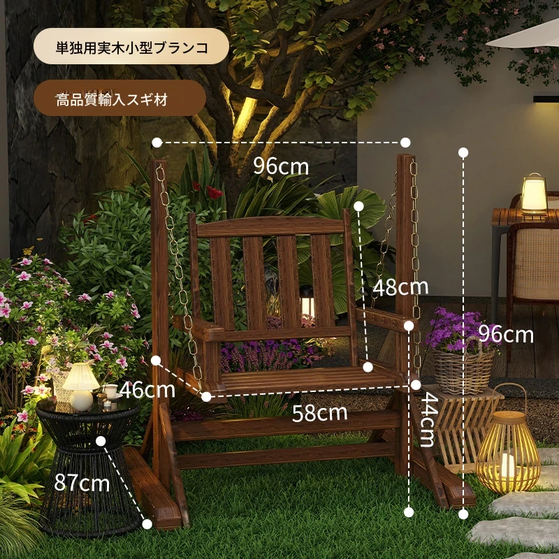アウトドア庭園用の防水・防腐木製シングルハンモックチェア!おしゃれなデザインで、リラックスした時間を楽しめる人気の秋千(ブランコ)。バルコニーや庭にぴったりのアイテムです。