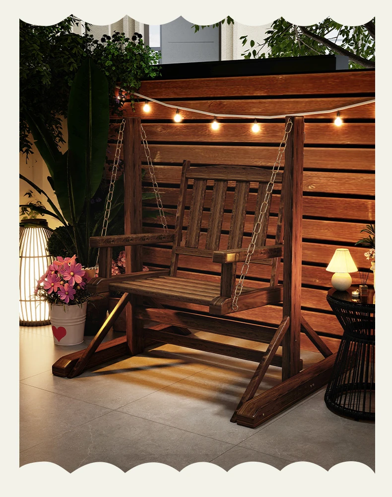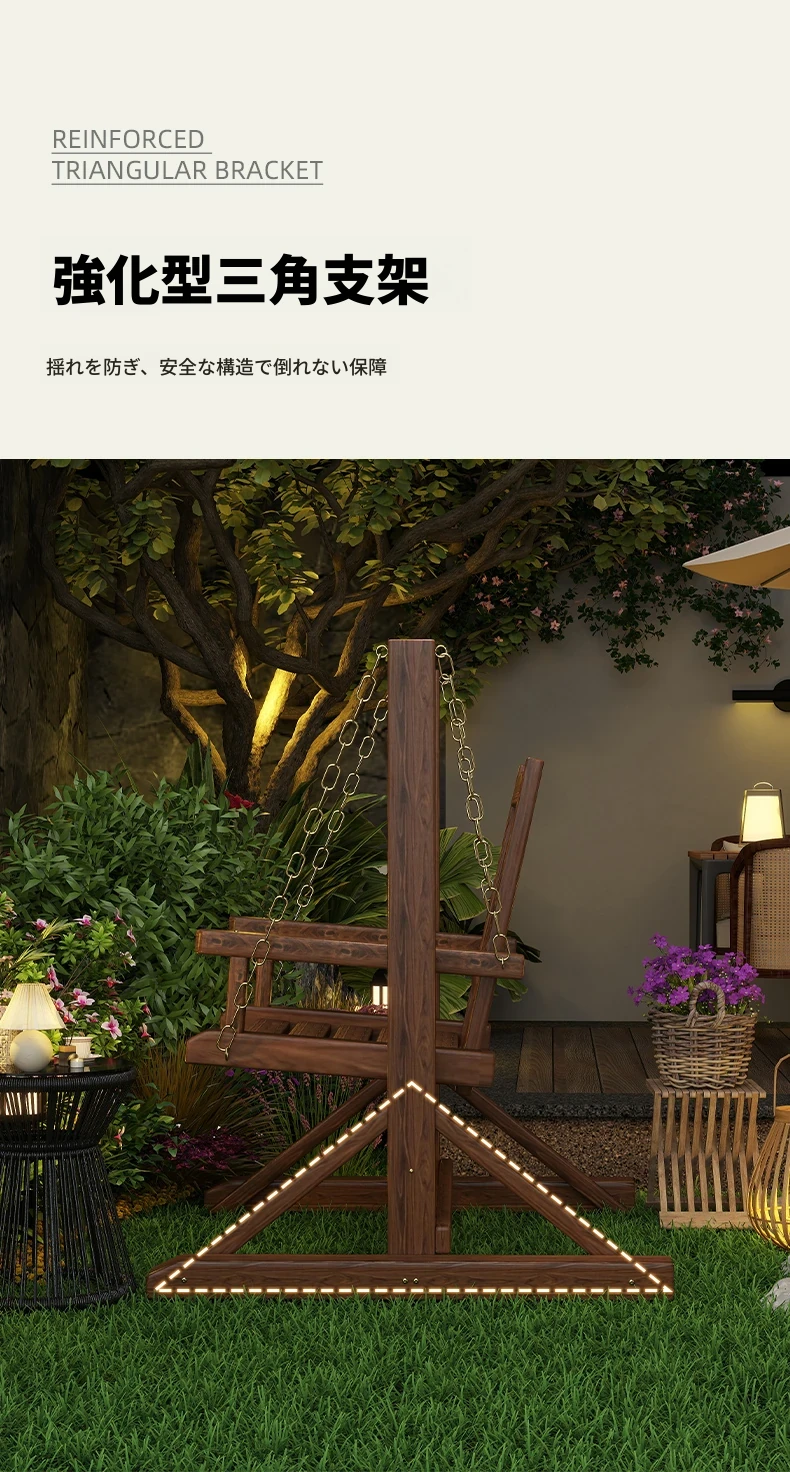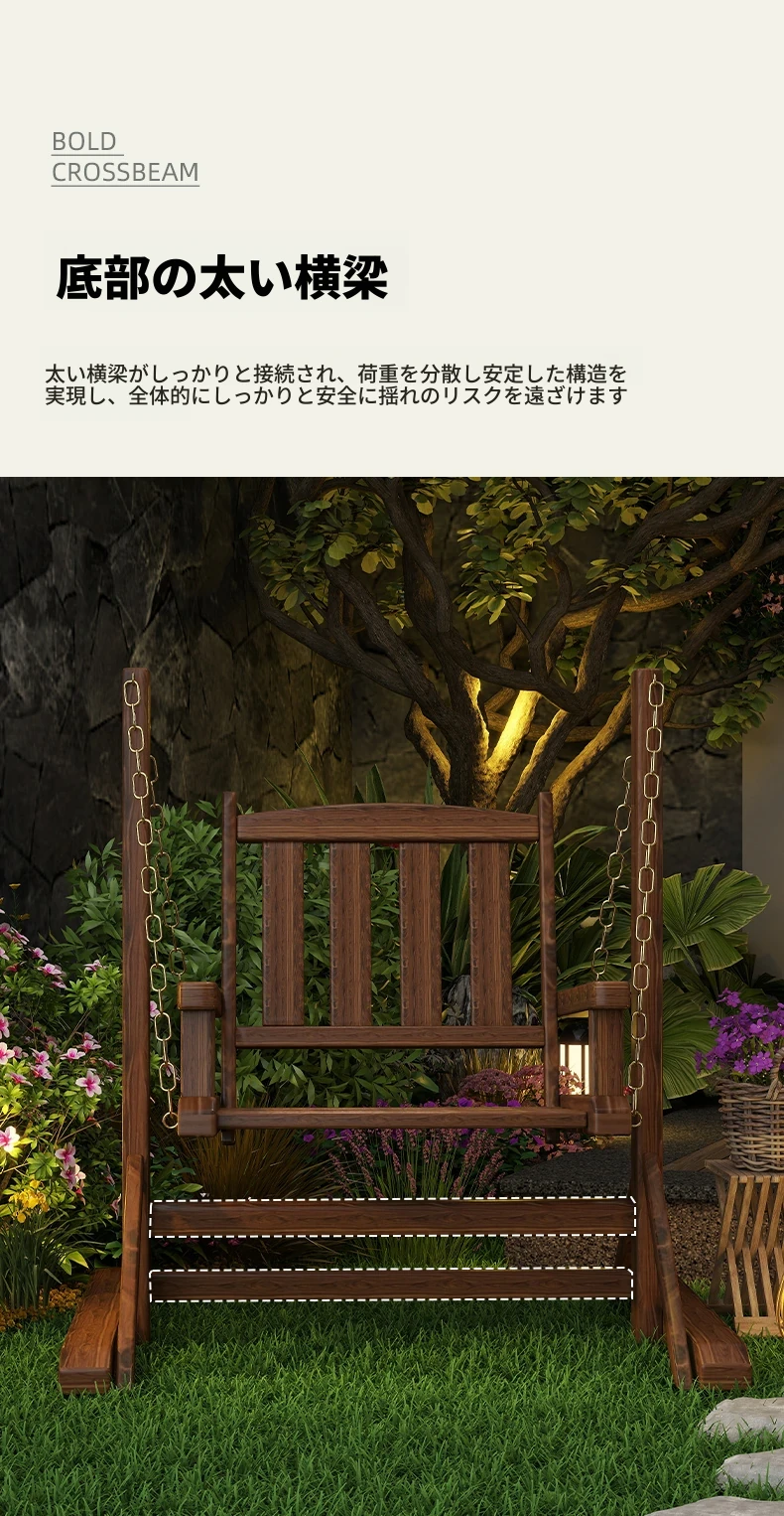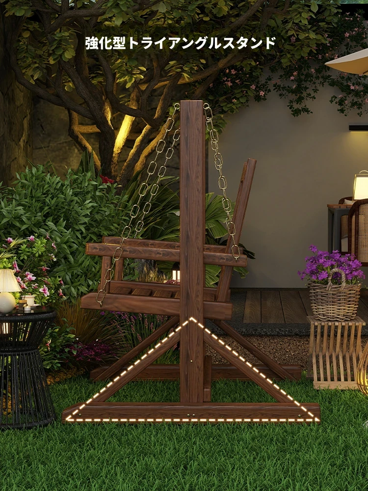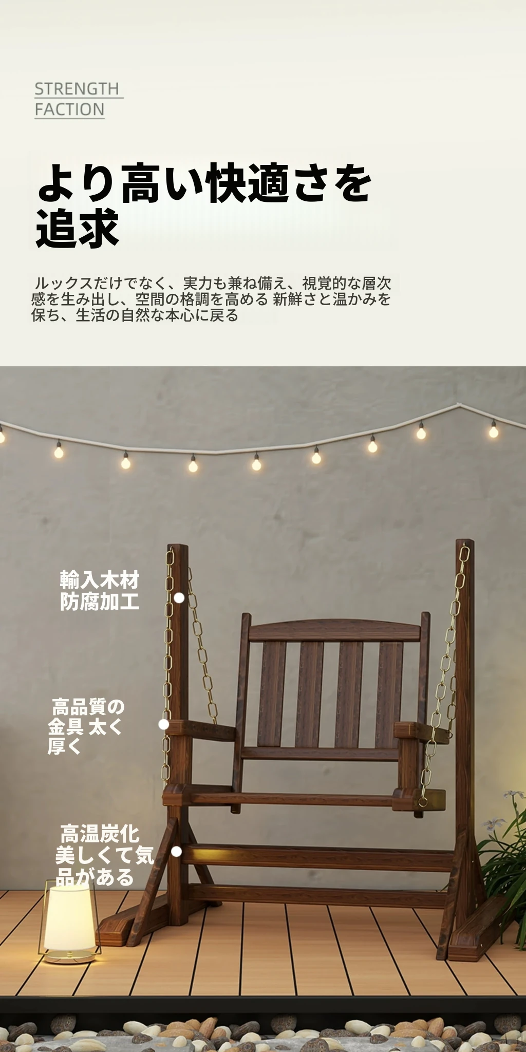アウトドア庭園用の防水・防腐木製シングルハンモックチェア!おしゃれなデザインで、リラックスした時間を楽しめる人気の秋千(ブランコ)。バルコニーや庭にぴったりのアイテムです。